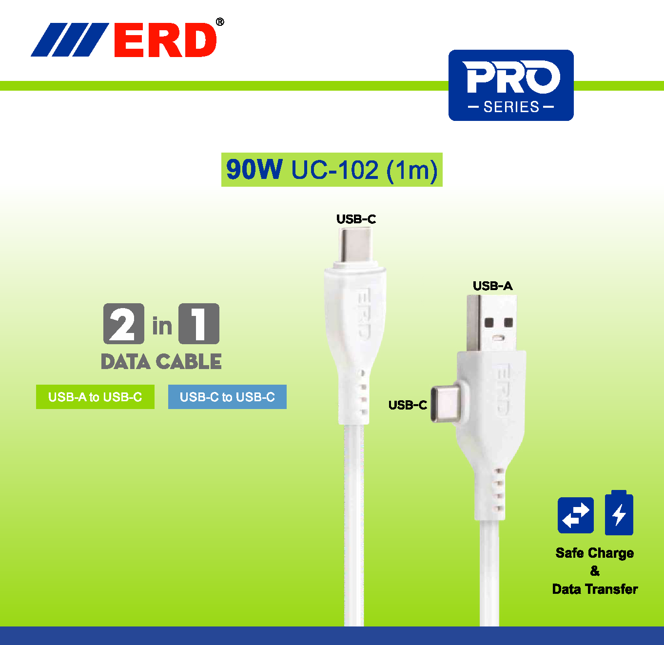 The ERD PRO Series UC-102 2-in-1 Braided Data Cable is a high-power, versatile charging solution designed for modern users who want flexibility without carrying multiple cables. Featuring USB-A + USB-C input with a USB-C output, this cable supports up to 90W fast charging, making it suitable for smartphones, tablets, power banks, and USB-C laptops. The durable braided design ensures long-lasting performance for daily use.